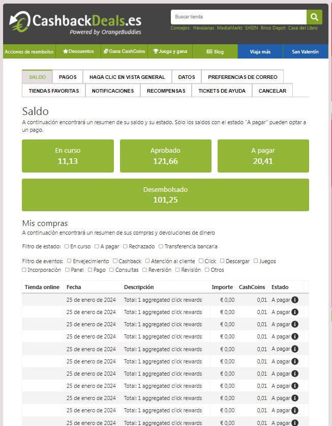 - Esta plataforma te paga un porcentaje % por comprar en páginas web afiliadas.